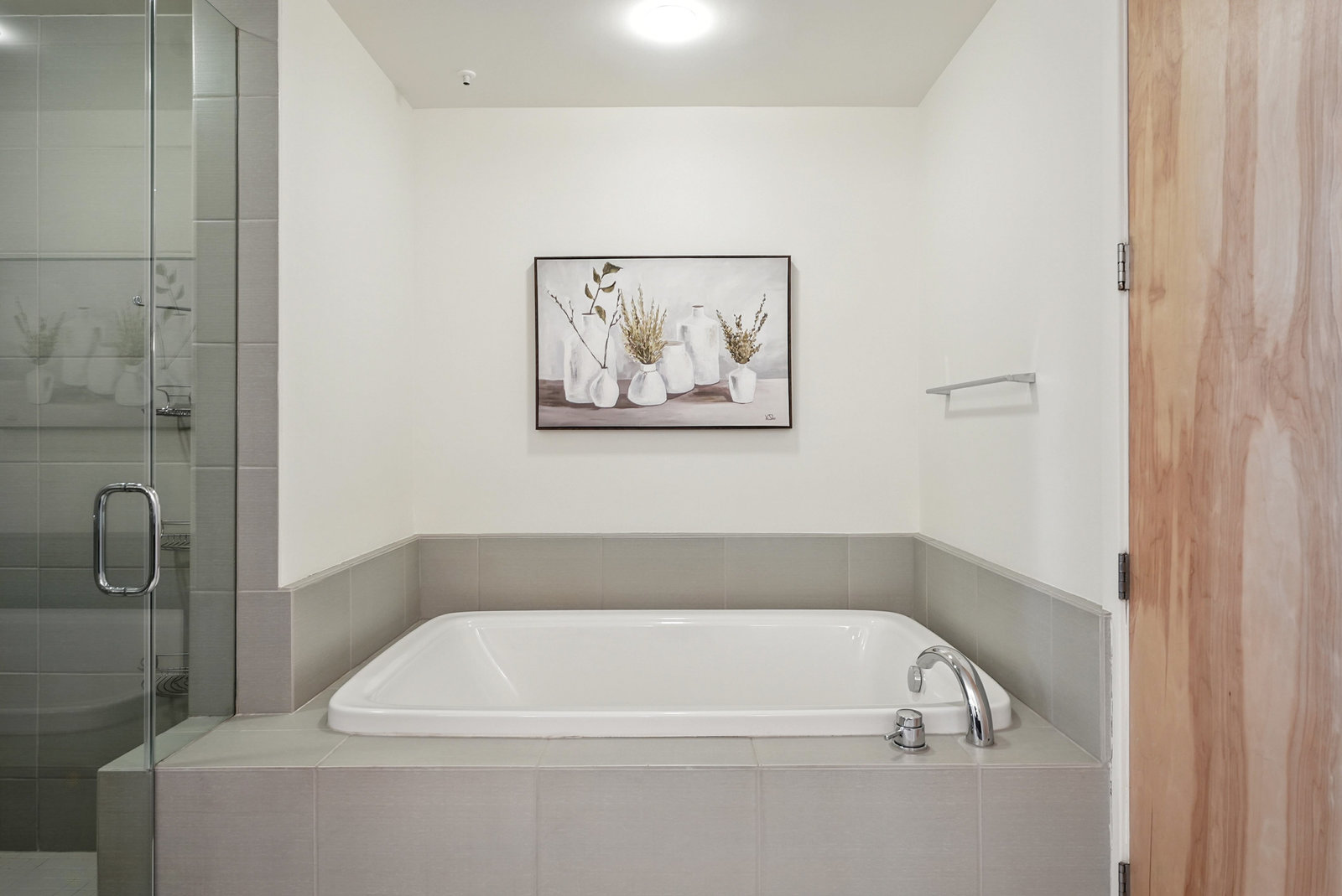 The main bedroom as well as the living room each lead to their own balcony, offering beautiful and peaceful views of the area. The main bathroom is a study in tranquility with a dual vanity, a walk-in closet and soothing colors.