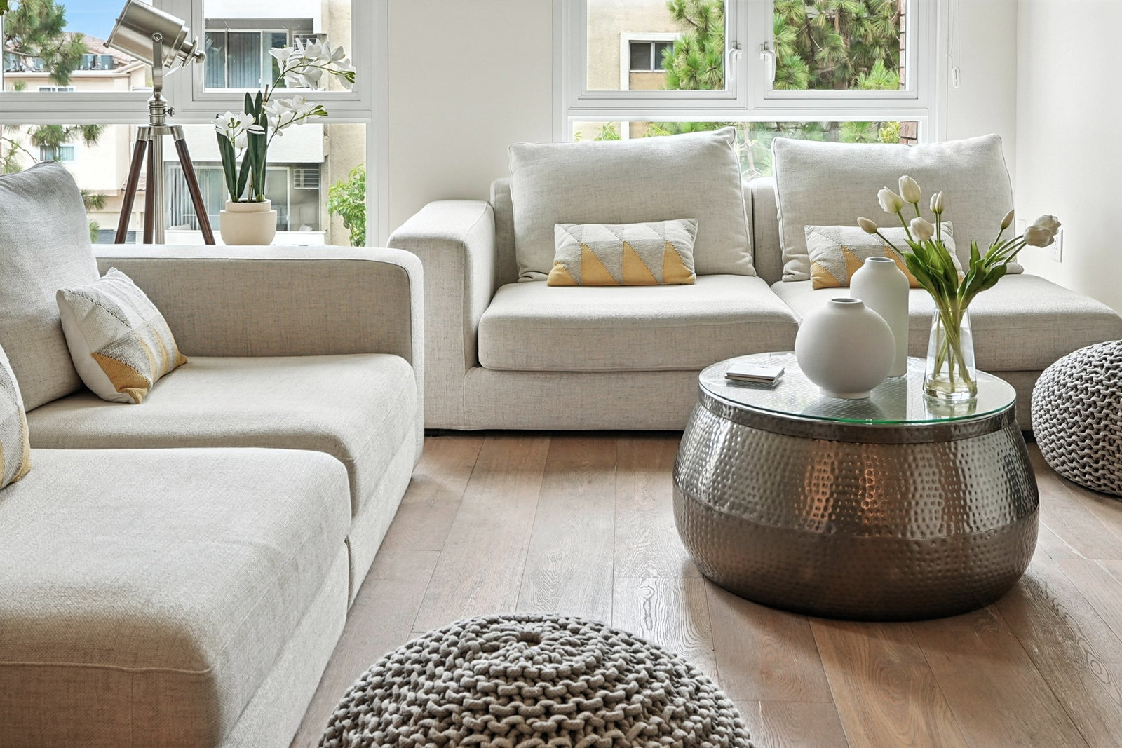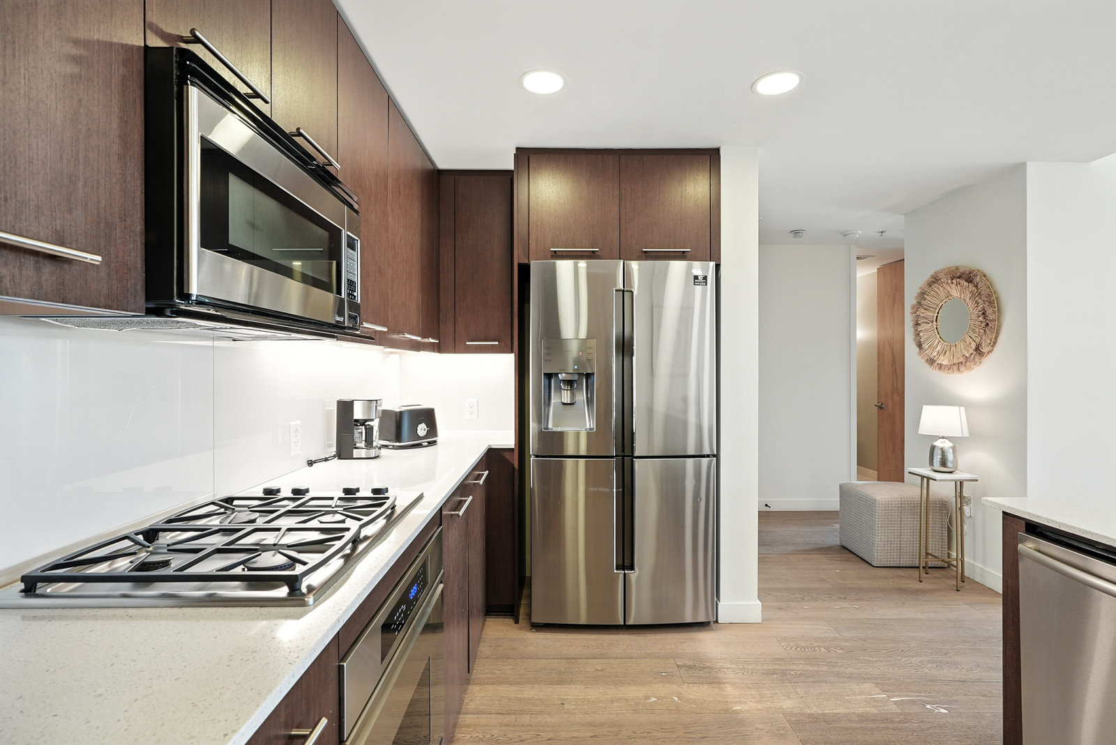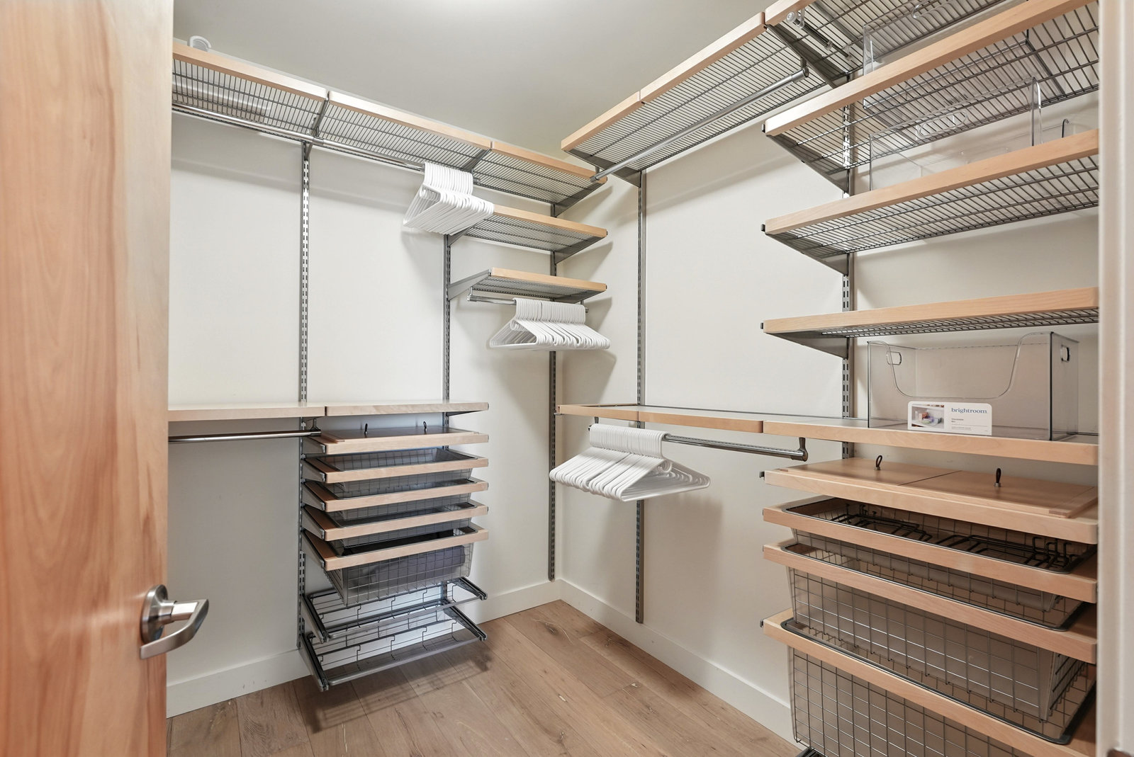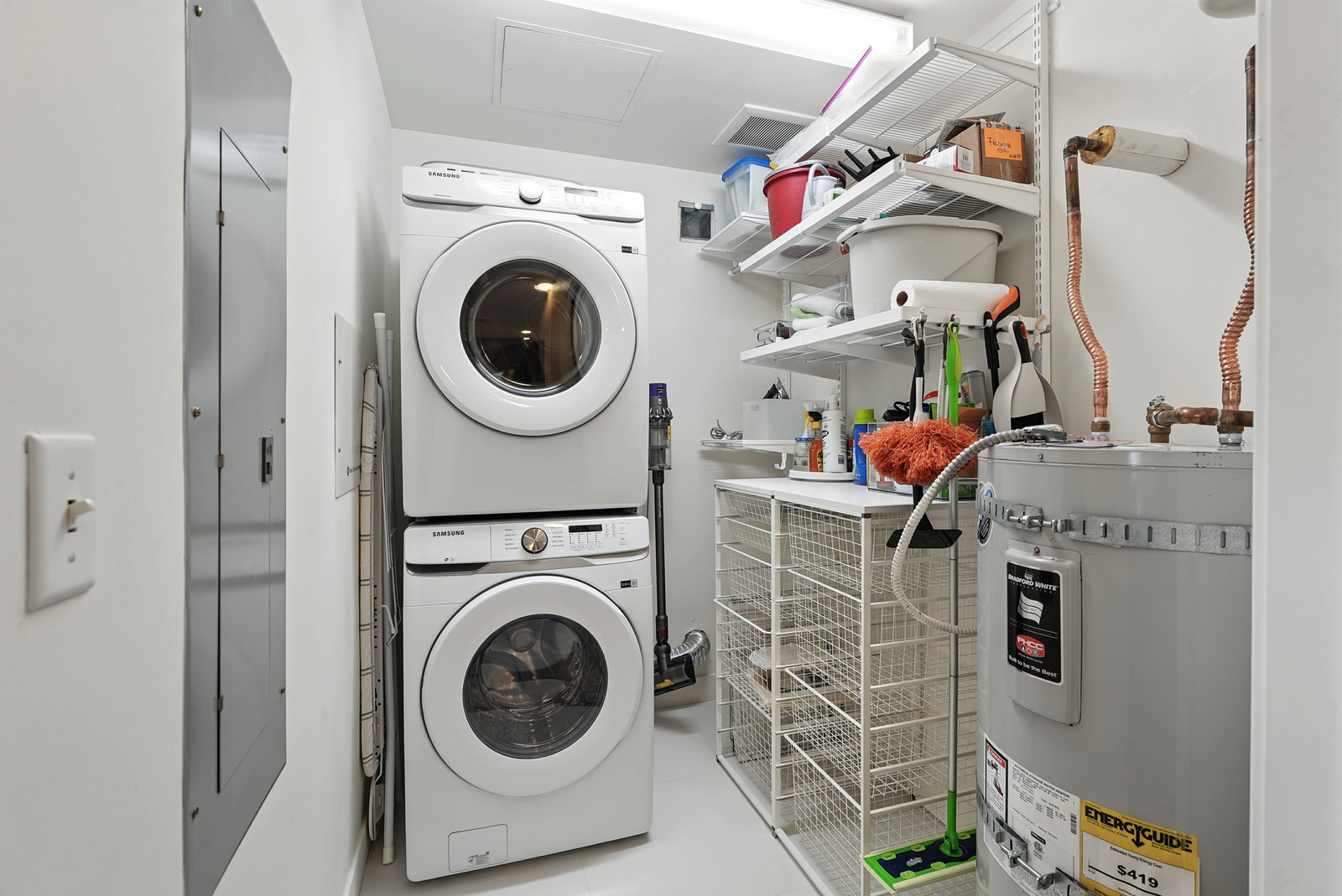 Exemplifying both modern and contemporary elegance, this truly turn-key property features an easy flowing floor plan with tall ceilings, a chef's kitchen with a spacious work island/sit-at bar & beautiful cabinetry, neutral plank flooring throughout, and a separate laundry room that also serves as a pantry.